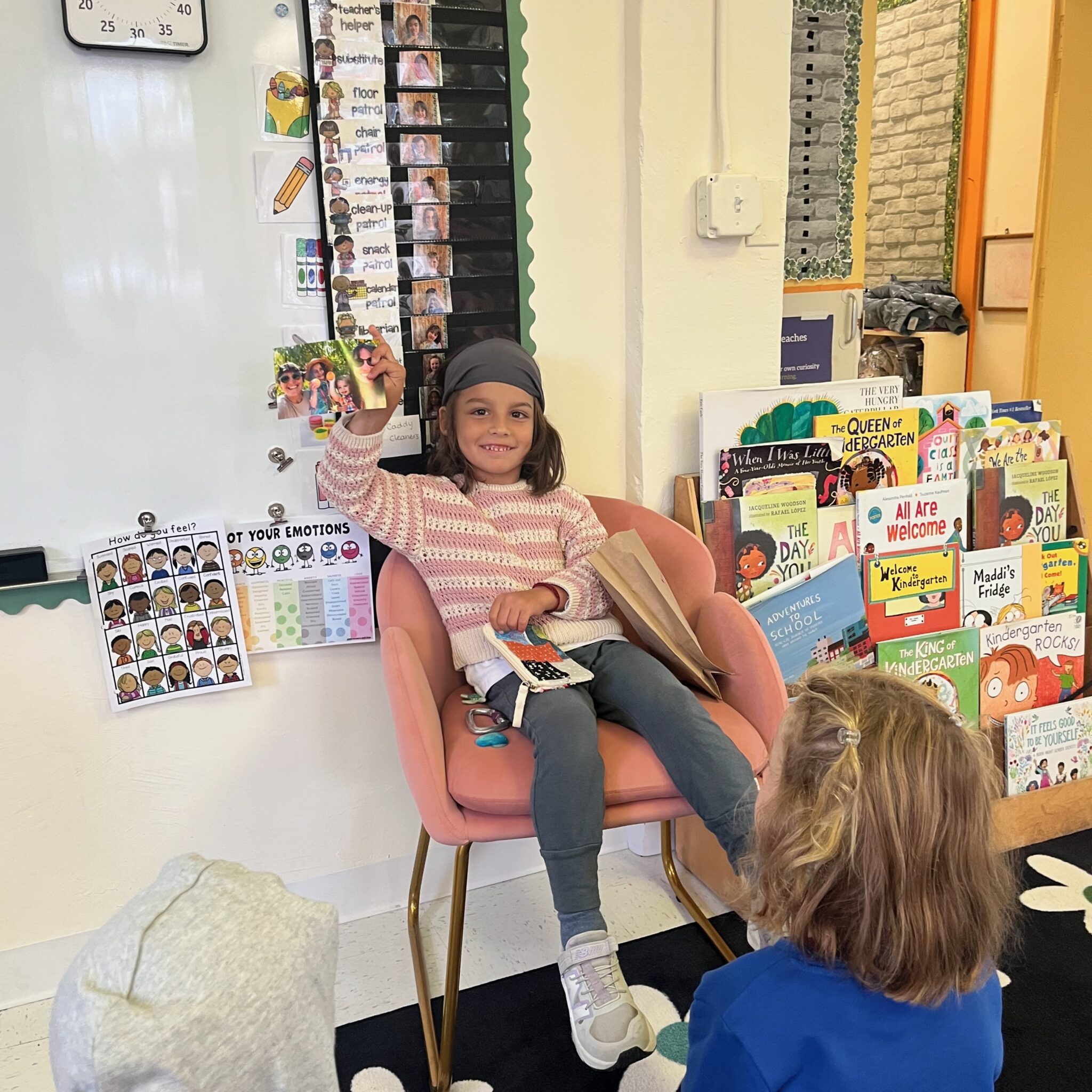 Kindergarteners launch the year with All About Me Bags, each filled with items representing aspects of their identity. This project ties into our first unit social studies focus on who we are as individuals, and who we are as a community. Students explore questions like Who am I? Who are you? Who are we? How can we learn together? and How can I be a friend in this community?