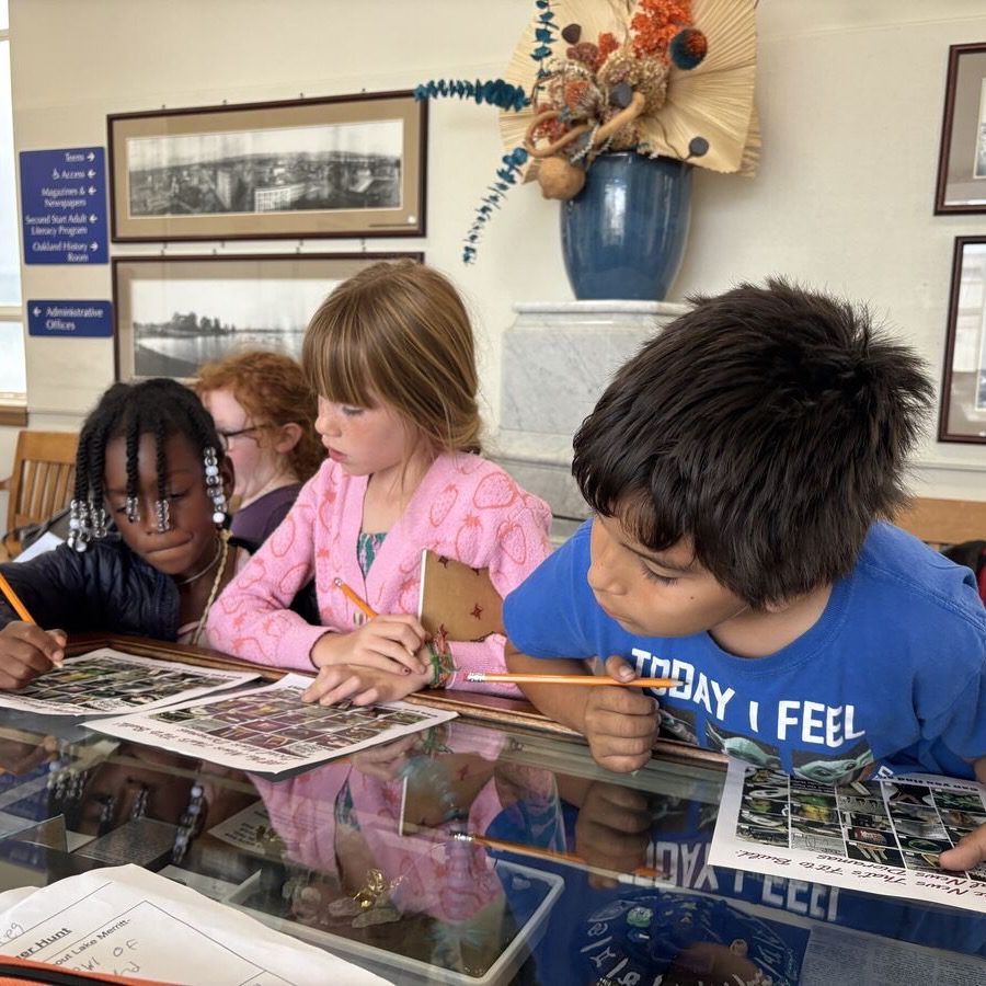 3rd grade historians visit the Oakland History Room at the Oakland Main Library as they begin researching important Oakland landmarks and developing their independent research skills.
